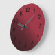 A wine red clock with black cloister style numbers and fading diagonal half shadow to lower left, simple and elegant with an air of mystery, dark gothic style charm. You can use the customise feature and select a different colour background to harmonise with your personal decor style; or, add text if you like. This clock is great for kitchen, living room, bedroom, family room, kids' rooms, studio; makes a perfect gift for friends and family with gothic tastes, for birthday, Christmas or anytime you please.