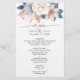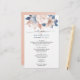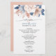 Wedding reception menu designed with elegant dusty blue and blush hand painted flowers.