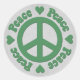 Peace - light grey sticker with faded green lettering, peace sign and hearts.