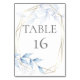 Modern gold multi faceted terrarium style frame accented with pastel greenery in dusty blue and very pale lilac. Classic font simply says "table" and you choose the number, one card for each table number. Design created for the BarefootBride™ by ©WhimsicalArtwork™ We created this template to make it easy for you to personalise with your own information. This is part of a coordinated wedding stationery suite.