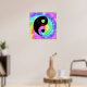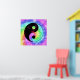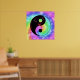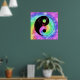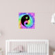 Yin yang poster with faded rainbow spiral tie-dye background.