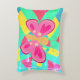 Faded Teal pattern with pink butterfly Decorative Cushion