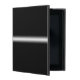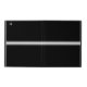 A thin white line runs through the centre of the black background. The edges of the stripe are soft, fading into the black. The stylish design has a lot of negative space.