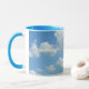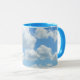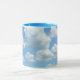 A picture of the sky and the fading blue colours with puffy white clouds.