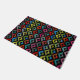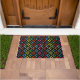 This doormat has a geometric design of half-diamonds repeating across the design in fading colors.