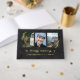 Memorial service guest book in black with the hint of a printed marble texture. In loving memory written in a bold modern gold foil script. The funeral guest book features a three photo collage where you can add your own photos of your loved one. Personalise by writing their name on the cover and the spine. Golden berry twigs adorn the sides of the outermost photos. Gold and black in loving memory memorial guestbook personalised with photos.