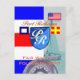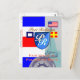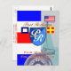 Fair Winds and Following Seas Port Richman American Flag Nautical Postcard. A yacht sailing on the oceans and fully customisable text: "Port Richman", text on crest "Yachting" and customisable initials/ monograms "P" and "R" with nautical flags, compass rose with wind directions navigation, fully customisable text on postcard "Fair Winds & Following Seas" (Nautical saying for safe voyage/ good luck) and blue white red striped marine sign language flag letter C - "Charlie" stripe pattern and customisable U.S. Flag with custom text "United States" for American water sporting fans from the U.S.A. and sailing boats and yacht owners!