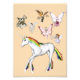 A group of fairies have coloured a white Unicorn's mane, tail, forelock and fetlocks red, blue, green, yellow, and orange!