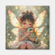 A cute magnet featuring a sweet little fairy girl holding her baby dragon. Cute anime chibi illustration.