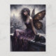 Fairy and her black cat overlook the city postcard