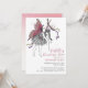 Enchanting illustrated fairy girl's 5th birthday party invitation. Magical and pretty script typography in pink, contrasted with black text.