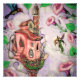 A charming hand-painted scene of a tiny fairy and her castle. Morning Glories and a hummingbird help put it all in perspective. The vine's tendrils give her a walkway to her home.