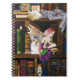 Two kittens and one fairy sit upon a bookshelf full of books for your magical cat.