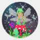 Fairy Elf Girl Sitting on Magical Mushroom Classic Round Sticker