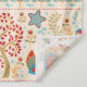 Bear, fox, rooster and chicken with chicken, fairy houses, forest, plants on a beige background. Holiday design for home textiles and clothing.
