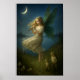 Fairy Girl Playing A Flute To Frogs In Moonlight Poster