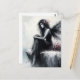 Fairy in a black dress sitting on cliff edge postcard