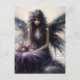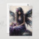 Fairy in a purple dress sitting on seaside cliff postcard