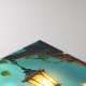A beautiful wall art piece featuring a fairy sitting on a msurhoom in an enchanted forest being lit up by lanterns drinking a warm cup of coffee.