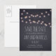 String lights wedding save-the-date postcard on a rustic chalkboard background. All the text included can be modified (size, colour, font, placement). This save-the-date postcard is part of the String Light and Chalkboard Wedding Invitation Set. Please note that the background and string lights themselves cannot be modified.