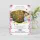 A beautiful and magical large tree with branches stretching outwards is surrounded by small magic fireflies and string lights. The tree is in a forest and has lush green foliage around it and pretty butterflies flying through the air. The forest scene is framed by a hexagonal faux gold geometric frame that has a pretty brunette fae or faery girl with pale yellow wings, wearing a blue summer dress, standing on the edge of the frame looking into the woodland. Pretty peony flowers form a border edge to this invitation. This is ideal for little girls mythical birthday parties; for adorable baby shower events and fairytale theme birthdays.