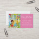 A business card suitable for a fairy party planner business, fairy shop, fairy products or new age business. This card features a whimsical cute watercolour illustration of a fairy amongst the flowers. Background colour and text can be fully customised to suit you needs.
