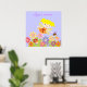 three fairies flit above the flowers. There is a light purple background, and Purple words that can be personalised.