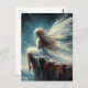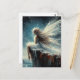 A cute fairy in a white dress sits on a cliff overlooking the sea fantasy AI generated art