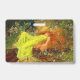 Badge featuring Arthur Wardle’s painting A Fairy Tale (1895). A young woman with long red hair wears a yellow dress and sleeps in a green forest next to resting deer, a rabbit, and peacock. A beautiful gift for fairy tale lovers and English art enthusiasts!