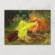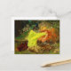 Postcard featuring Arthur Wardle’s painting A Fairy Tale (1895). A young woman with long red hair wears a yellow dress and sleeps in a green forest next to resting deer, a rabbit, and peacock. A beautiful gift for fairy tale lovers and English art enthusiasts!