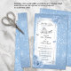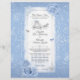 Create your own enchanting fairy tale inspired Cinderella scroll invitations in beautiful shades of light blue and faux metallic silver on a simple, editable template. Follow the dotted lines to cut and roll up these elegant wedding scroll invitations, wither with or without a dowel rod and ribbon, for a romantic mediaeval feel. The original art by Raphaela Wilson showcases delicate watercolor roses, faux sparkling silver butterfly confetti atop a fancy filigree border, and a magical pumpkin horse drawn carriage clock about to strike midnight.