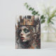 A gorgeous woman with a castle on her head and some macabre elements like skulls in the scene