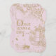This enchanting and elegant party invitation features a soft pink coloured background and a whimsical, fairy tale theme image printed in a gold glitter design.