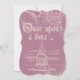 This enchanting and elegant fairy tale inspired party invitation features a rose blush coloured background and a whimsical, fairy tale theme image printed in a white gold glitter design. The shades in the printing give it a sparkly, glitter-like appearance.