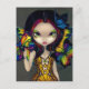 A beautiful big eyed fairy in rainbow colours - with a beautiful butterfly mask (and butterfly accents to her clothing!). My own original acrylic painting.