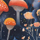 Fairycore Orange Mushrooms in a Blue Forest Wallpaper