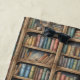 Fairytale bookshelf. Coloured pencils illustration. Seamless pattern. Custom text.