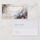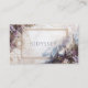 Define your brand with limitless imagination and the magical elegance of a hidden kingdom using this captivating business card. The design transports you to a magnificent, ethereal landscape, where a majestic stone castle with soaring spires overlooks a misty valley and distant snowy mountains. The backdrop features a bright, hazy sky blending into cool blue-gray tones. The entire scene is lavishly framed by lush purple and lavender florals and vines, creating a romantic border. Adding intrigue, intricate gold celestial compasses and maps are overlaid in the corners. A prominent thin gold rectangular frame anchors the center, providing a sophisticated space for your key information. This artwork beautifully merges adventure, romance, and high-end elegance that makes your card truly unforgettable. This business card is ideally suited for a high-end travel agency promoting fantasy or epic destinations, a luxury event planner specializing in themed galas or fantasy weddings, or a fine jewelry artisan showcasing gold and celestial pieces. It would also perfectly suit a fantasy novelist or editor seeking distinctive, narrative-driven branding, or a boutique hotelier wanting to convey a magical, unique setting. The card's captivating combination of enchanted scenery and abundant purple florals ensures it is versatile for any sophisticated announcement, a refined gift enclosure, or an elegant invitation.