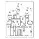 A simple outline of a fantasy castle out of a storybook. Suitable for colouring.
