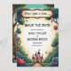 This elegant fairytale-style save the date invitation is perfect for a modern wedding. The retro design features a vintage enchanted forest, a castle illustration, and black calligraphy on a storybook-themed background.