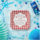 Fairytale Princess Fairest One Red Gingham Plaid Birthday Paper Plates - Adorable first birthday napkins with a red gingham background and a vintage label shape. The phrase "the fairest one of all" is framed by two red apples. Inspired by the classic princess fairytale Little Snow White by the Grimm Brothers. Personalise by adding your little girl's name and the date of the party.