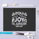 Spread positivity with this inspirational Bible-inspired quote design: “You will have joy and gladness.” A beautiful reminder of hope, faith, and encouragement, perfect for Christian gifts, uplifting wall art, or motivational apparel. Great for church members, Bible study, or anyone who loves faith-based inspiration.