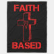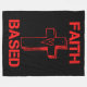 This fleece blanket has a design that features the words "Faith Based" in a bold print font with red letters plus cross with a heart in the centre in this faith based biblical quote theme. This Blanket is made from 100% buttery soft and cosy polyester fleece with edge-to-edge vibrant full colour sublimation printing and double edge stitching with a off-white coloured back machine washable.