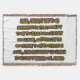 This throw blanket has a design that features the faith based serenity prayer with a Bowl Shadow print font plus golden coloured letters and black outline in this faith based biblical theme. This Blanket is made with from 75% cotton and 25% polyester with a very soft feel hand washing recommend.