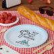 Paper plates with an inspirational Christian quote which says: Faith Can Move Mountains. Matthew 17:20. With an image of mountains and a cross with a heart.
