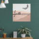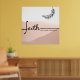 Powerful message Faith can Move Mountains with pink background, olive branch and flowing text. Inspiration in any room. Biblical quotations (Matthew 17:10)