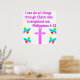 Show you love of Jesus and believing in miracles with this pretty pink cross and butterfly Philippians 4:13 design. I can do all things through Christ who strengthens me. This inspiring Philippians 4:13 design will make a treasured gift when blessing that someone special that loves Jesus and reading the bible. This joyous Philippians 4:13 scripture verse design will look lovely wearing on a Tee or decorating your home with one of our charming home decor products. Share with all that Jesus Christ is the Lord of your heart and the keeper of your soul. Enjoy this delightful rainbow butterfly and cross design that is peaceful, spirit filled, and serene. What an encouraging way to share the love of Jesus Christ.