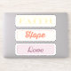 Faith, hope, and love: the three theological virtues, laid out by St. Paul the Apostle, in his famous letter to the Church in Corinth. "And now these three remain: faith, hope and love. But the greatest of these is love." Great gift for your Christian family and friends who like to share their faith with others.