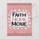 "Faith Hope Moxie" is a fun text design with a white accent shape surrounded by white whimsical textured dots.