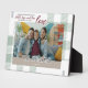 Celebrate your family with a modern photo scripture plaque design that highlights the timeless verse Faith, Hope and Love.